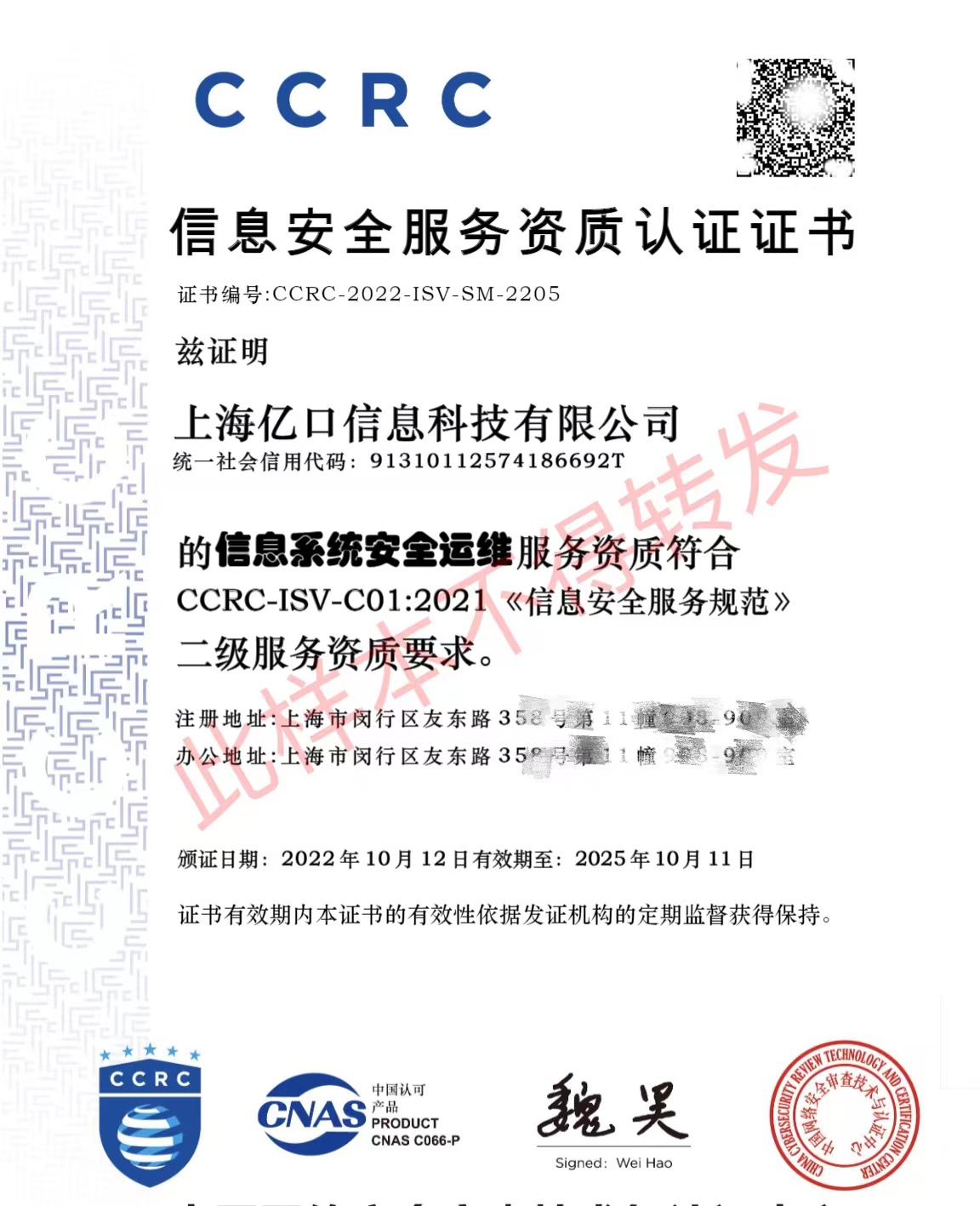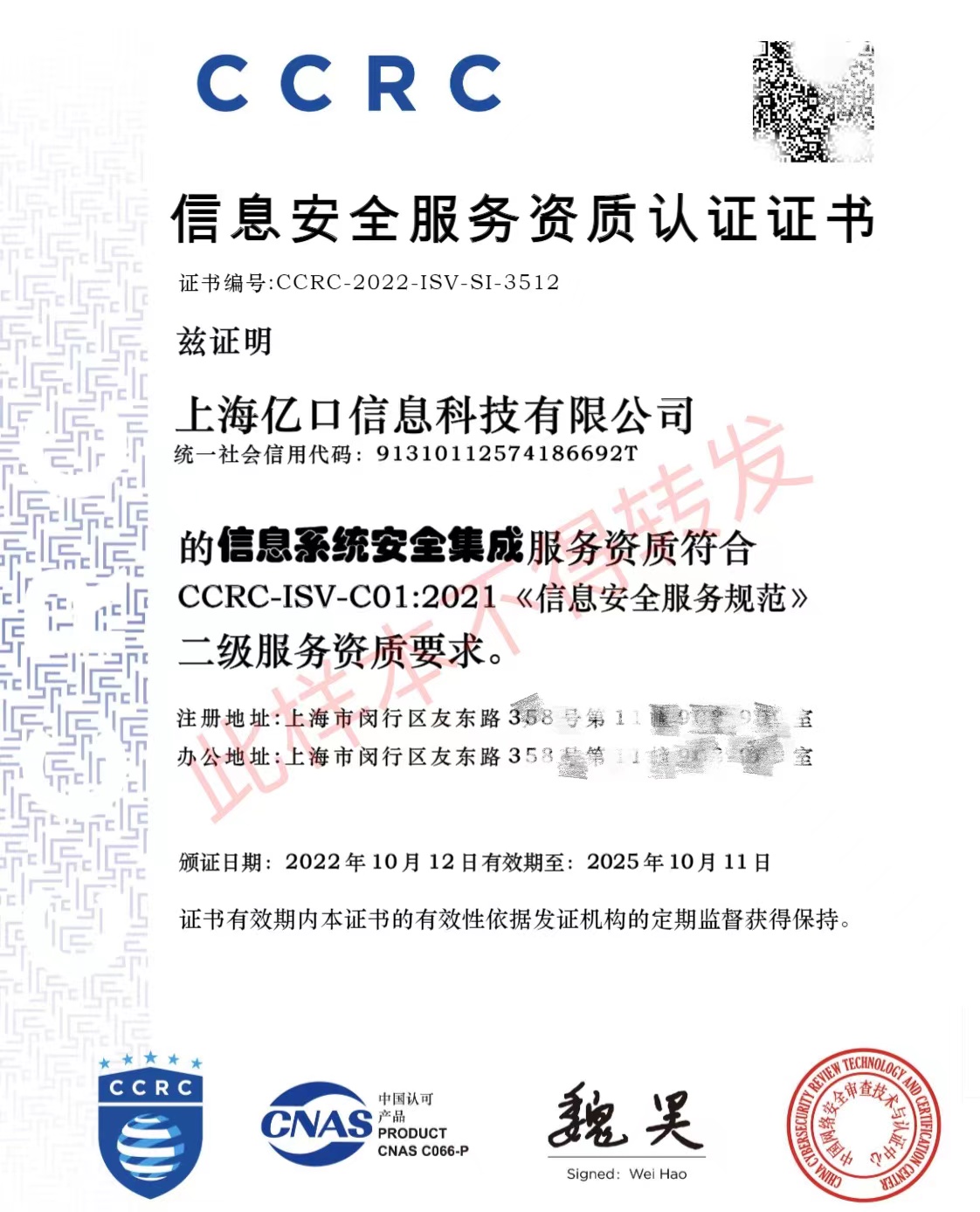 | 喜报——亿口科技成功取得CCRC信息系统安全集成和运维两项资质认证证书 |